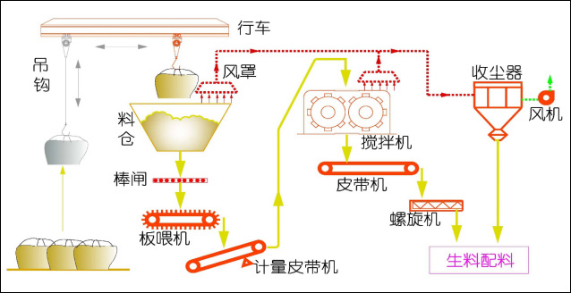 生料配料處置系統(tǒng)主要處置塊狀、粉狀物理形態(tài),不含有機(jī)物和揮發(fā)半揮發(fā)性重金屬的固態(tài)廢物。