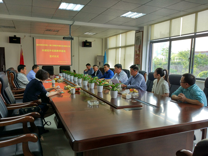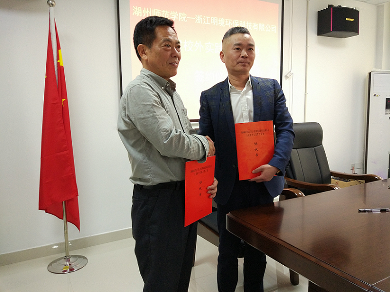 浙江明境環(huán)??萍加邢薰九c湖州師范學(xué)院,共建大學(xué)生校外教育基地,強(qiáng)化及細(xì)化校企合作的簽約