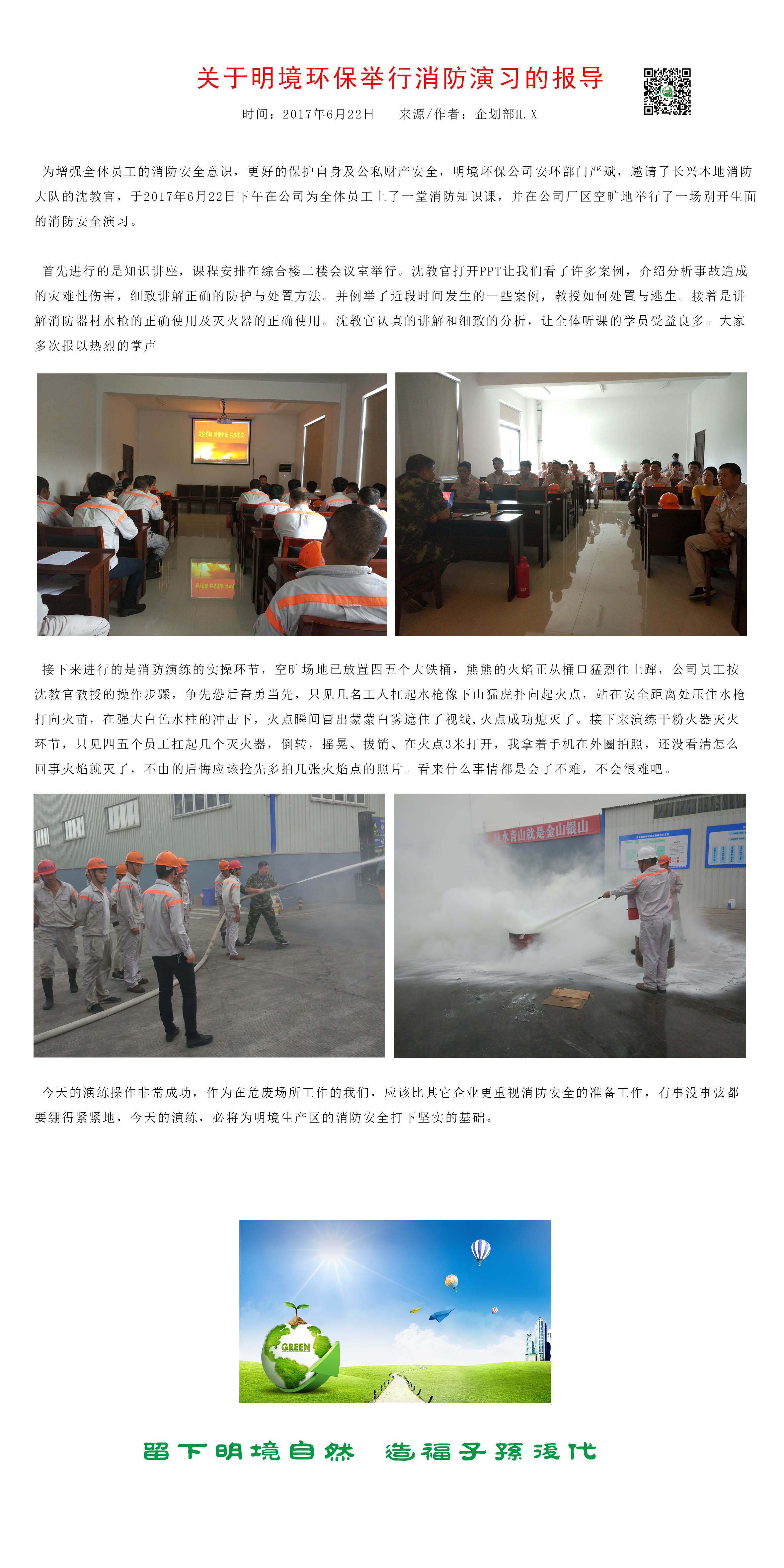 明境環(huán)保舉行消防演習(xí)的報導(dǎo)