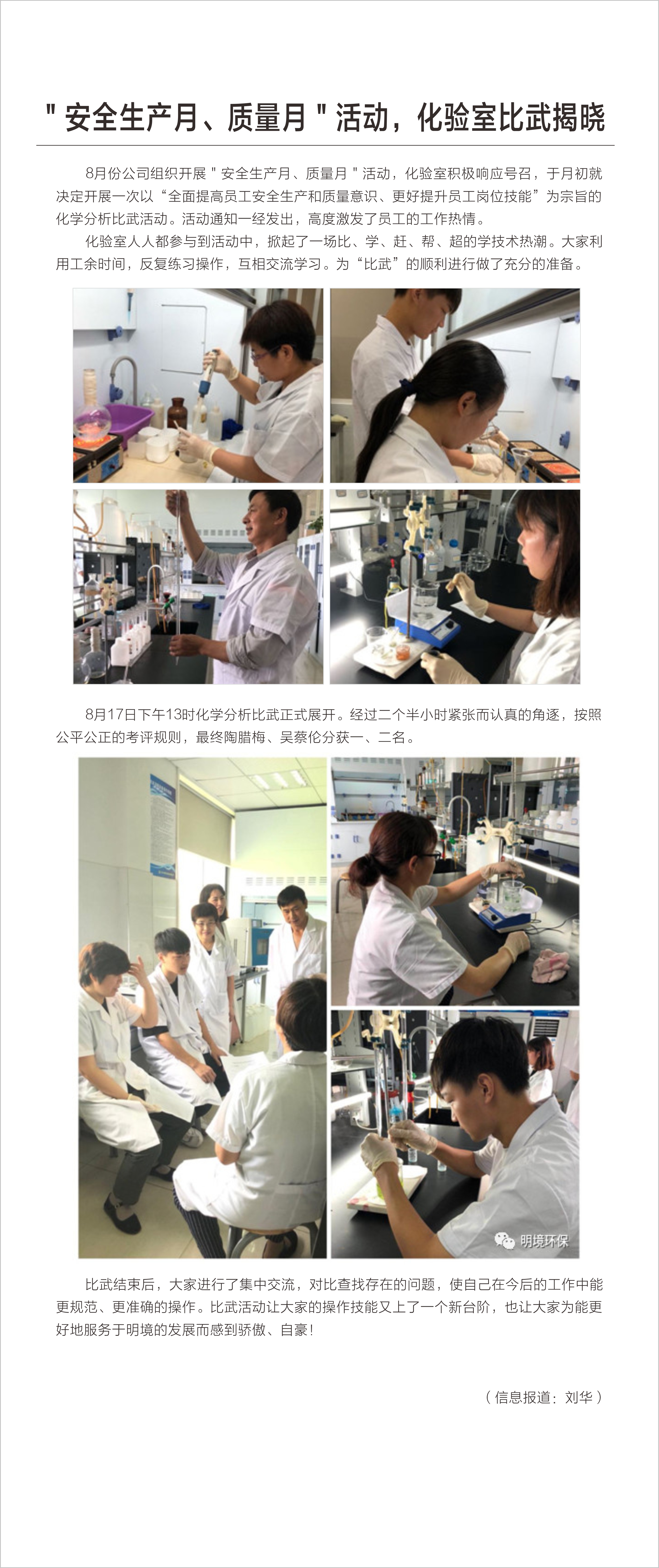 "安全生產(chǎn)月、質量月"活動,化驗室比武揭曉