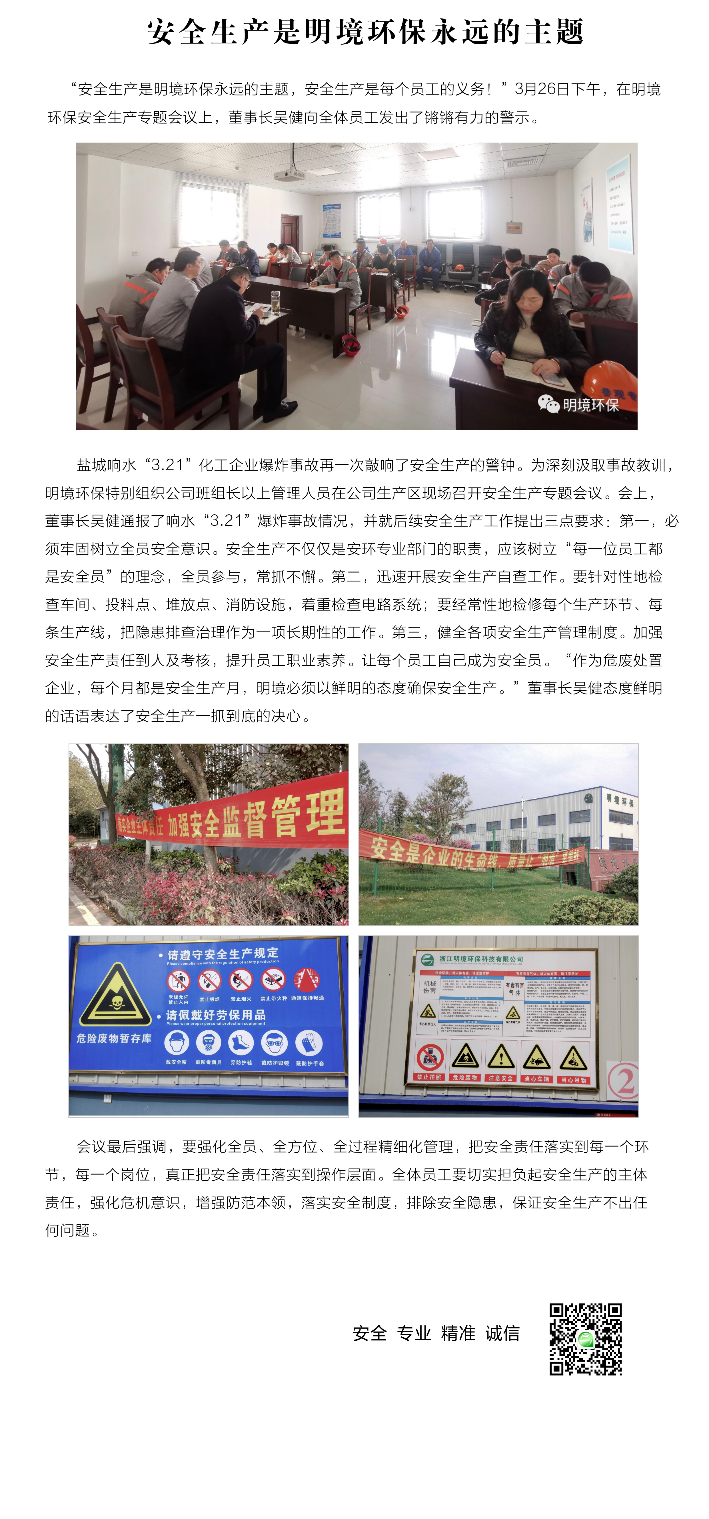 安全生產(chǎn)是明境環(huán)保永遠的主題