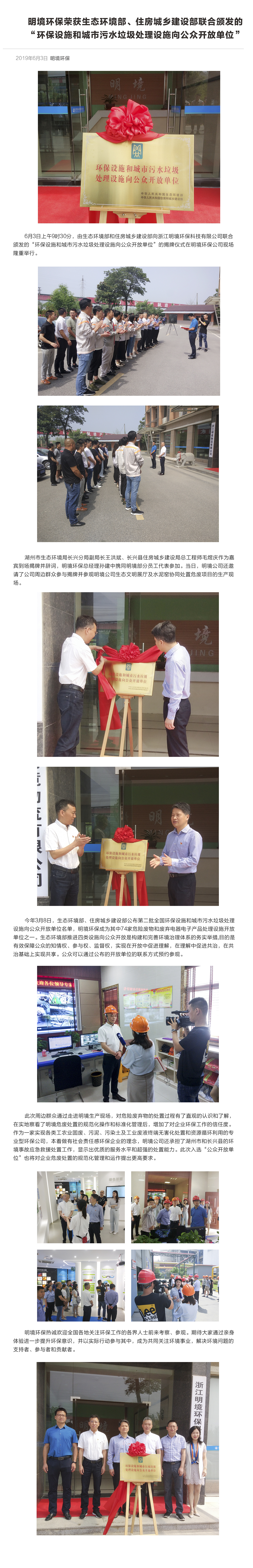 明境環(huán)保榮獲生態(tài)環(huán)境部、住房城鄉(xiāng)建設(shè)部聯(lián)合頒發(fā)的“環(huán)保設(shè)施和城市污水垃圾處理設(shè)施向公眾開放單位”
