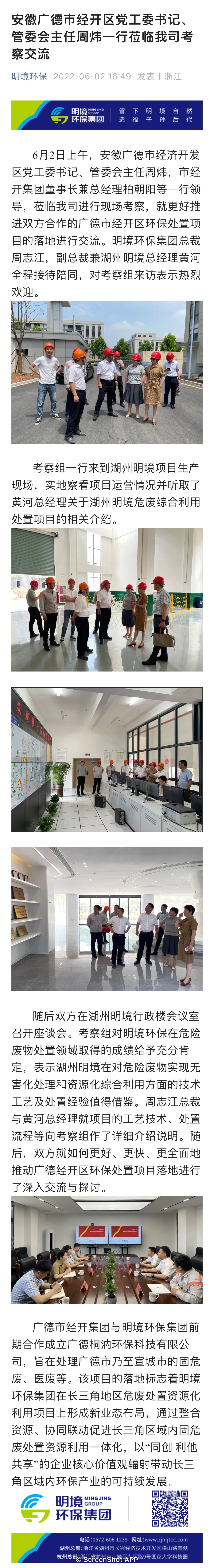 安徽廣德市經(jīng)開區(qū)黨工委書記周煒一行蒞臨我司考察交流