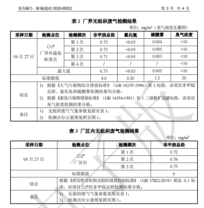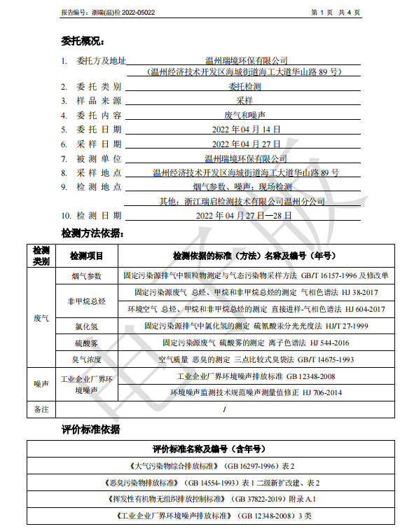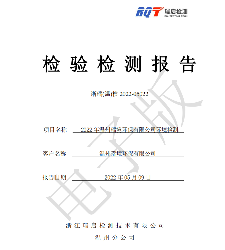 關于2022年溫州瑞境環(huán)??萍加邢薰经h(huán)境檢測報告的公示