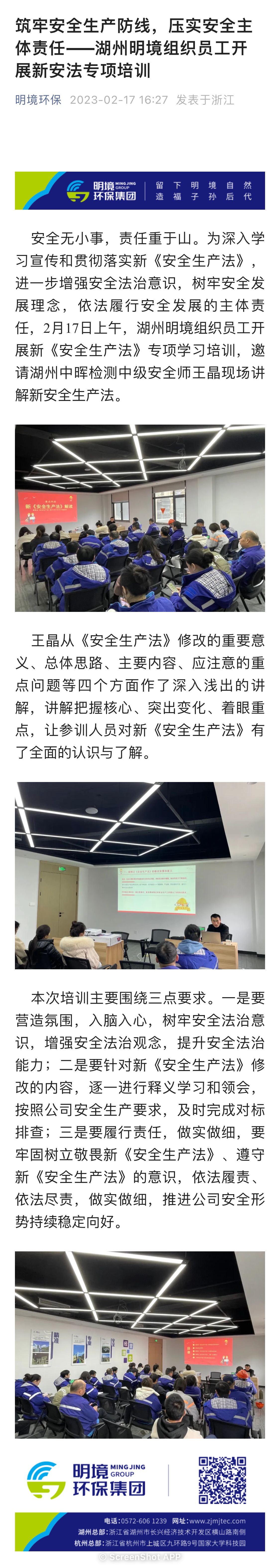 筑牢安全生產(chǎn)防線,壓實(shí)安全主體責(zé)任——湖州明境開展新安法培訓(xùn)