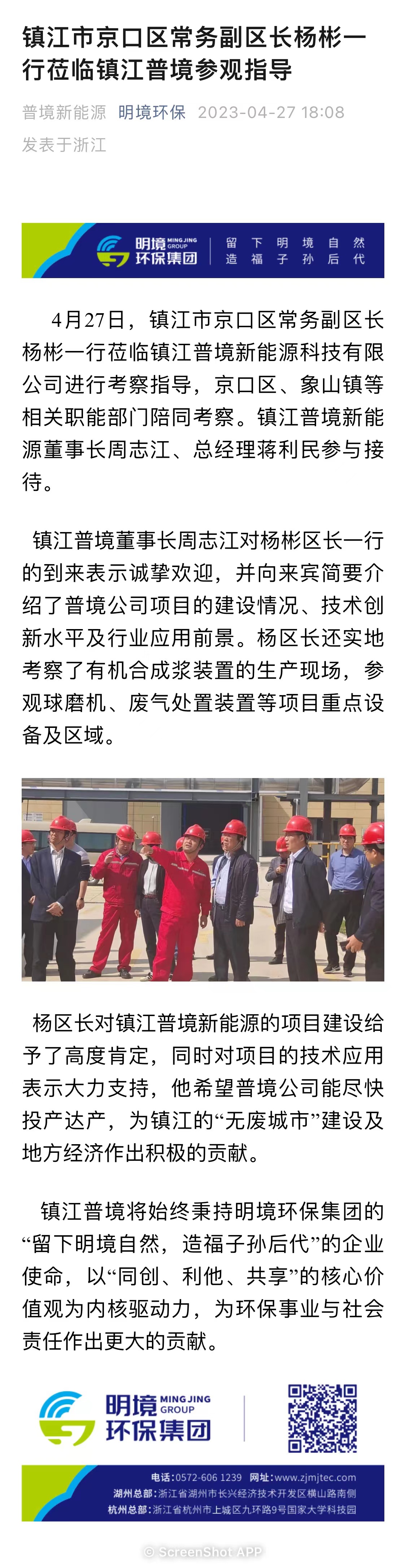 鎮(zhèn)江京口區(qū)常務(wù)副區(qū)長(zhǎng)楊彬一行蒞臨鎮(zhèn)江普境參觀指導(dǎo)