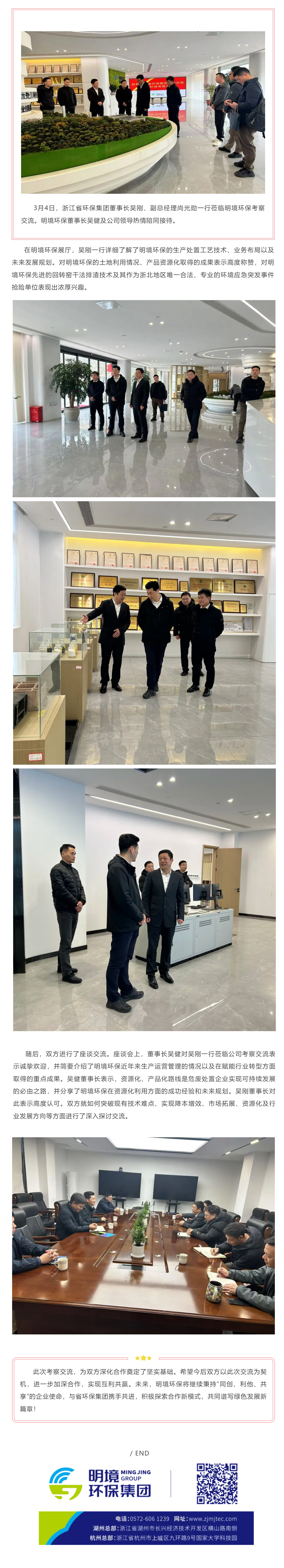 共謀綠色發(fā)展新篇章—浙江省環(huán)保集團(tuán)董事長(zhǎng)吳剛一行蒞臨明境環(huán)保考察交流