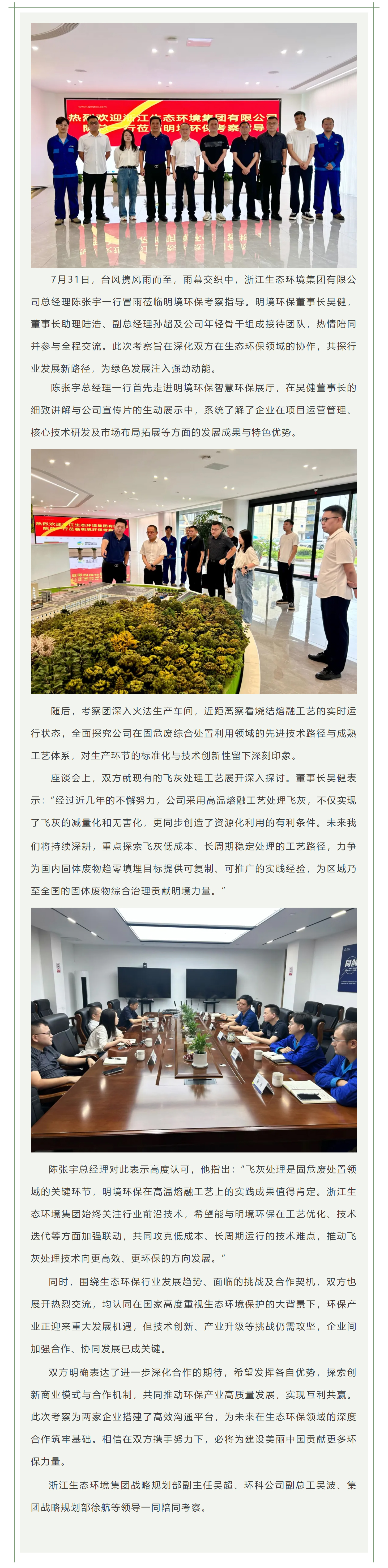 浙江生態(tài)環(huán)境集團(tuán)有限公司陳張宇一行蒞臨明境環(huán)保考察指導(dǎo)
